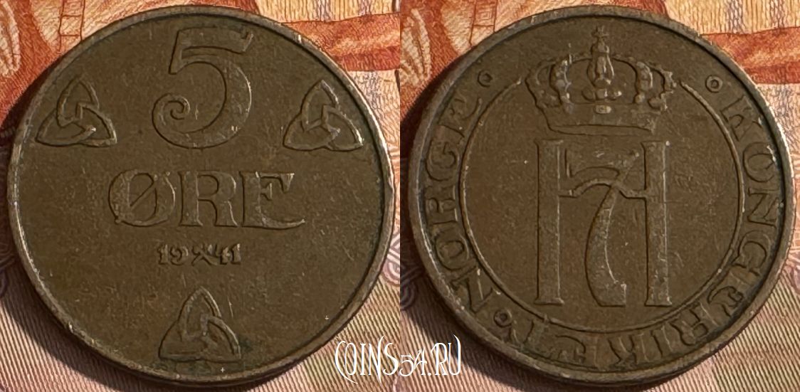 Норвегия 5 эре 1941 года, KM# 368, 076t-116