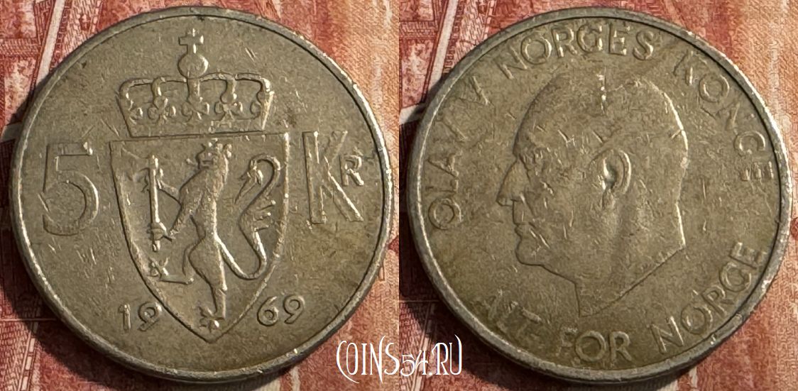 Норвегия 5 крон 1969 года, KM# 412, 472s-062