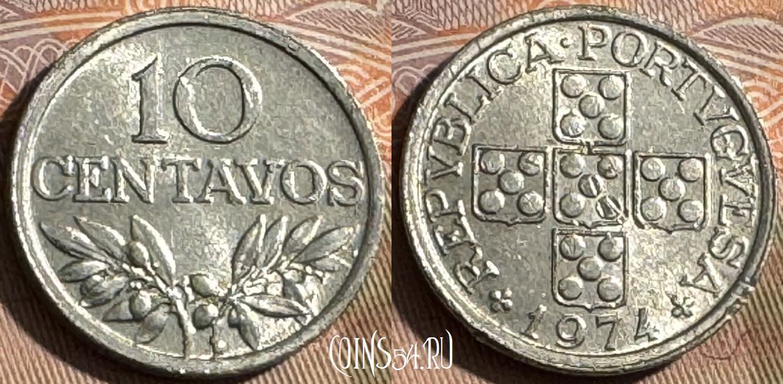 Португалия 10 сентаво 1974 года, KM# 594, 485s-028