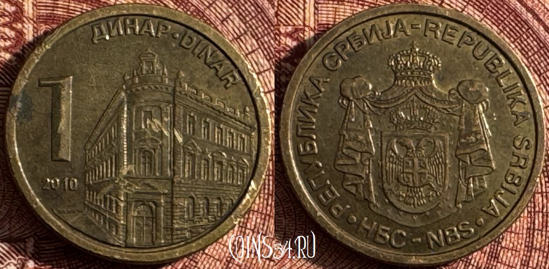 Сербия 1 динар 2010 года, KM# 48, 368s-088