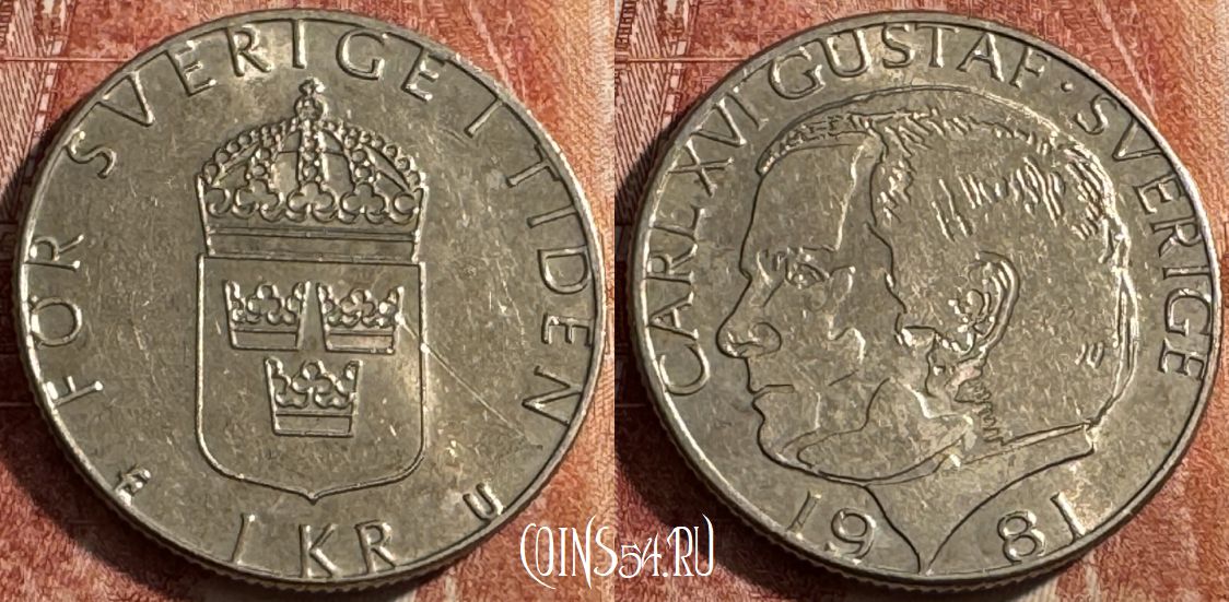 Швеция 1 крона 1981 года, KM# 852, 041s-162
