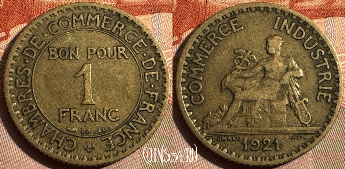 Франция 1 франк 1921 года, KM# 876, 353s-085