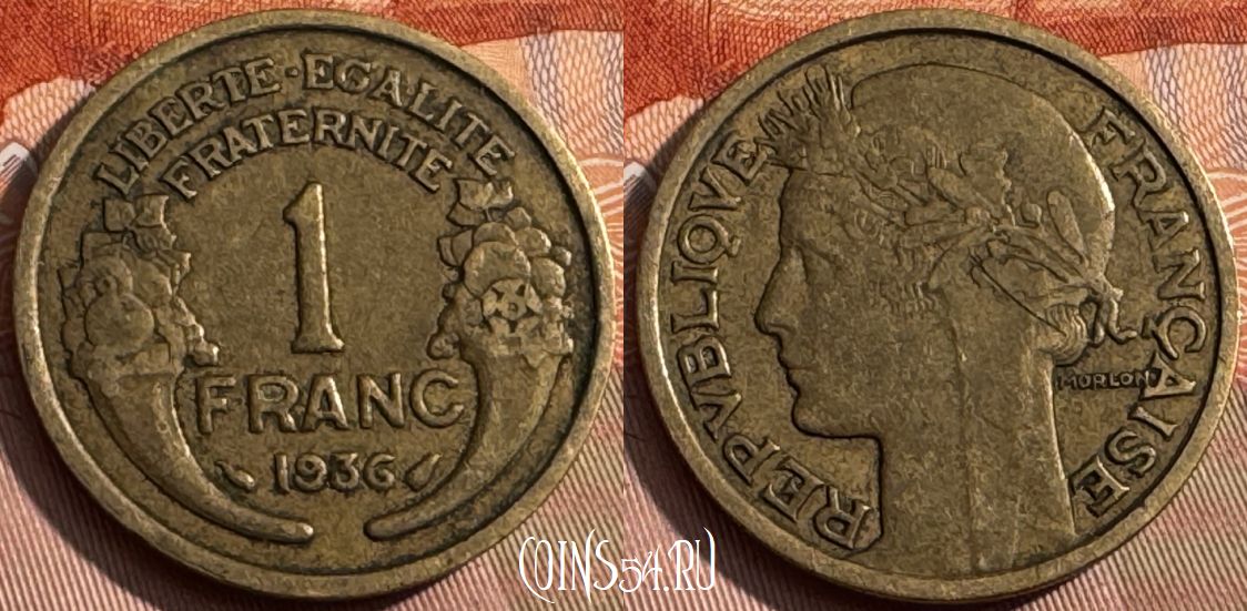 Франция 1 франк 1936 года, KM# 885, 162s-072