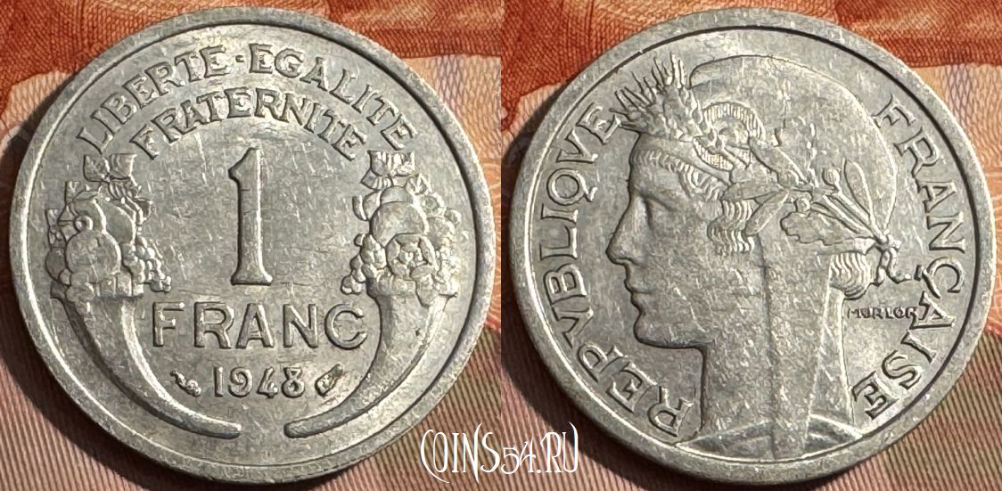 Франция 1 франк 1948 года, KM# 885a, 371s-126