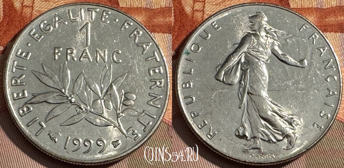 Франция 1 франк 1999 года, KM# 925, 369s-026
