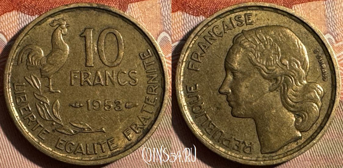 Франция 10 франков 1953 года, KM# 915, 357s-038