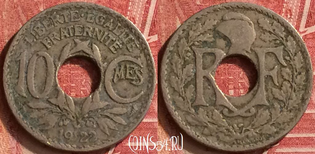 Франция 10 сантимов 1922 года, KM# 866a, 209m-139