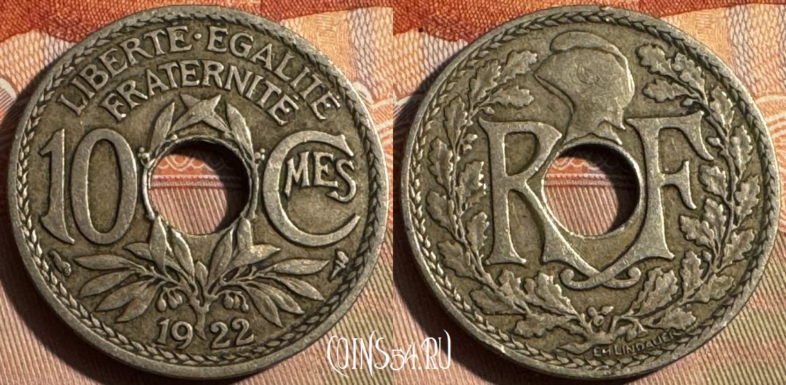 Франция 10 сантимов 1922 года, KM# 866a, 356s-006