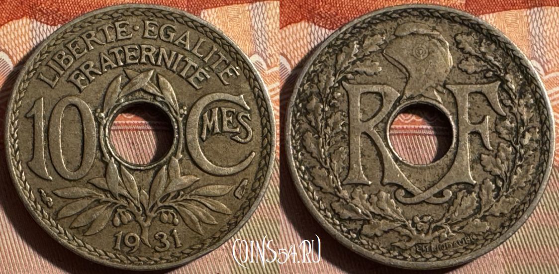 Франция 10 сантимов 1931 года, KM# 866a, 353s-125
