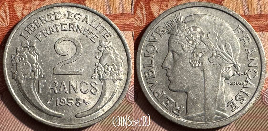 Франция 2 франка 1958 года, KM# 886a, 330s-027