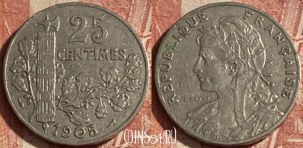 Франция 25 сантимов 1905 года, KM# 856, 265p-060