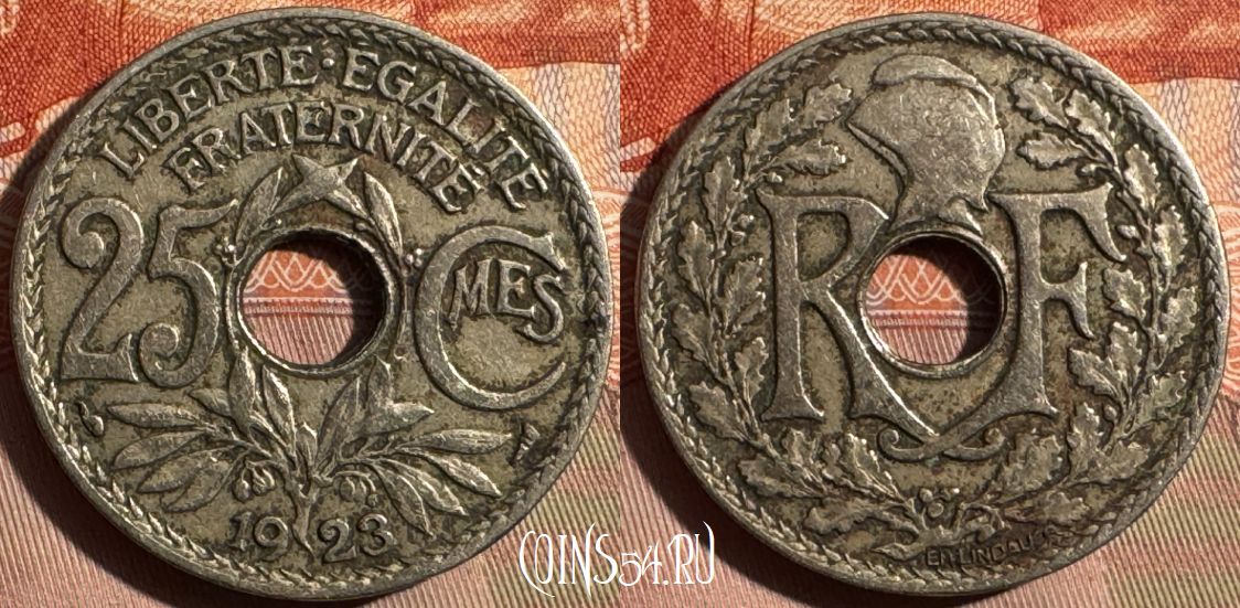 Франция 25 сантимов 1923 года, KM# 867a, 349s-107