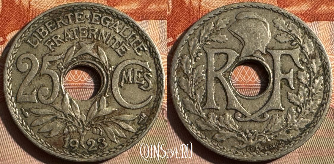 Франция 25 сантимов 1923 года, KM# 867a, 353s-098