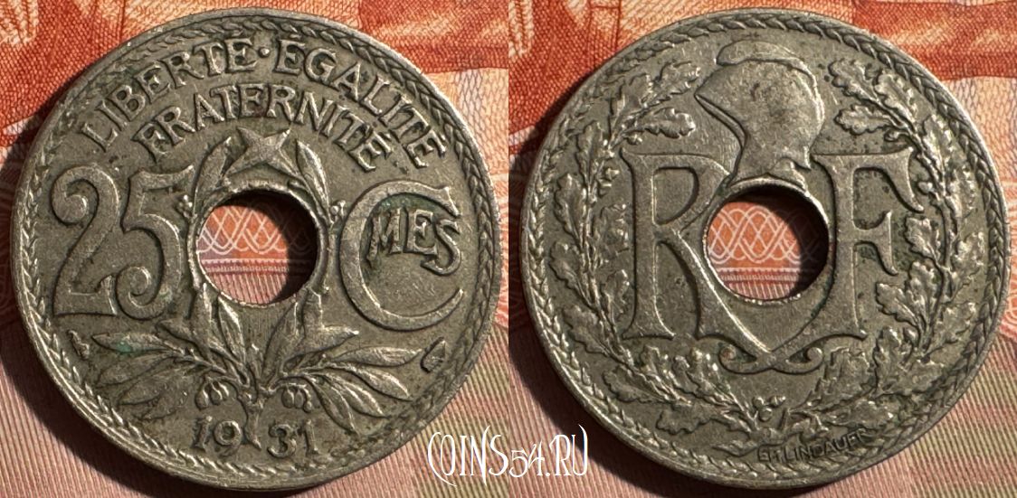 Франция 25 сантимов 1931 года, KM# 867a, 349s-119