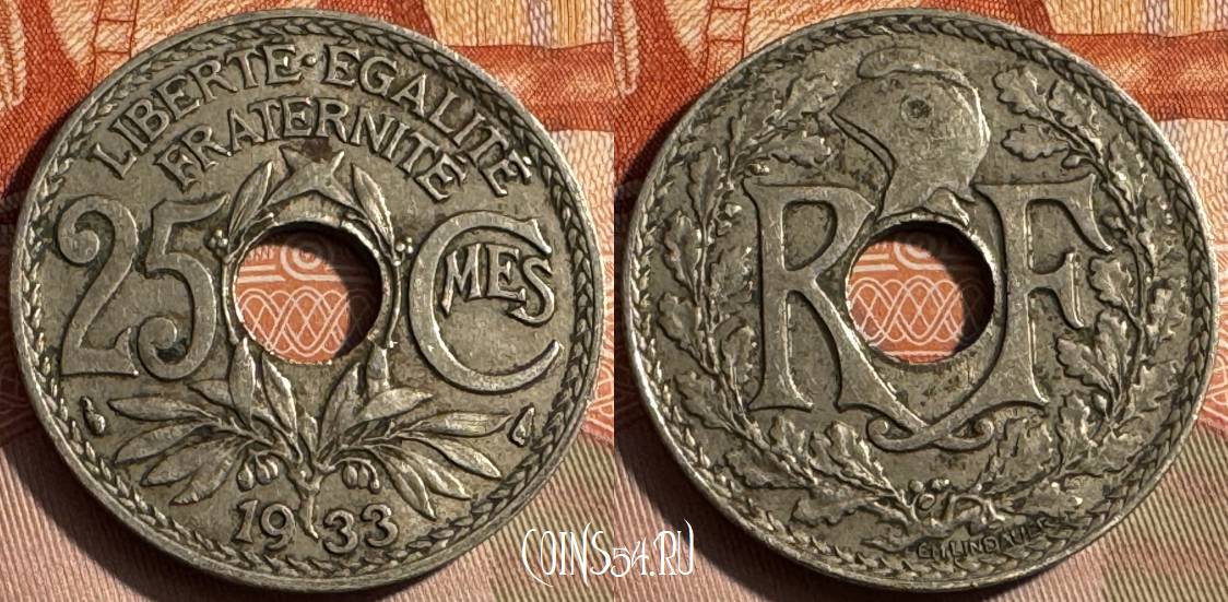Франция 25 сантимов 1933 года, KM# 867a, 328s-131