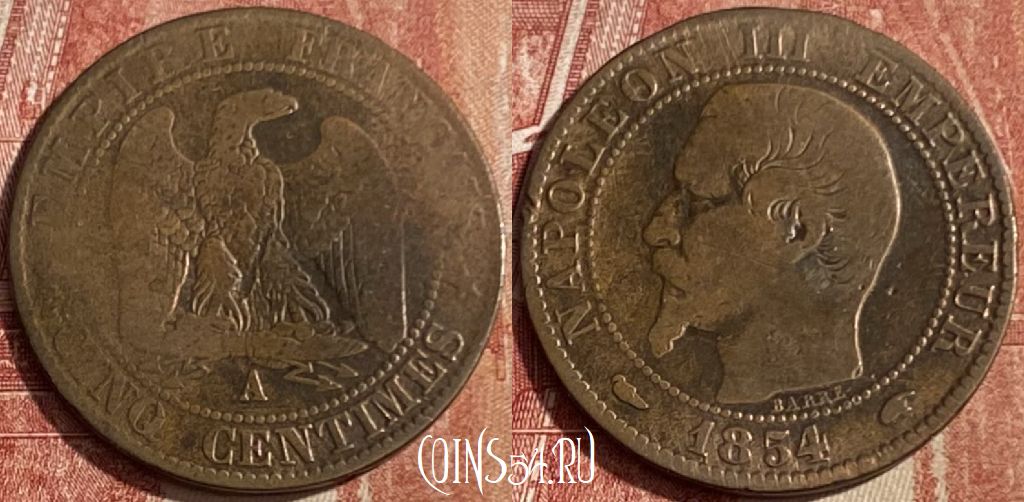 Франция 5 сантимов 1854 года A, KM# 777, 188q-029