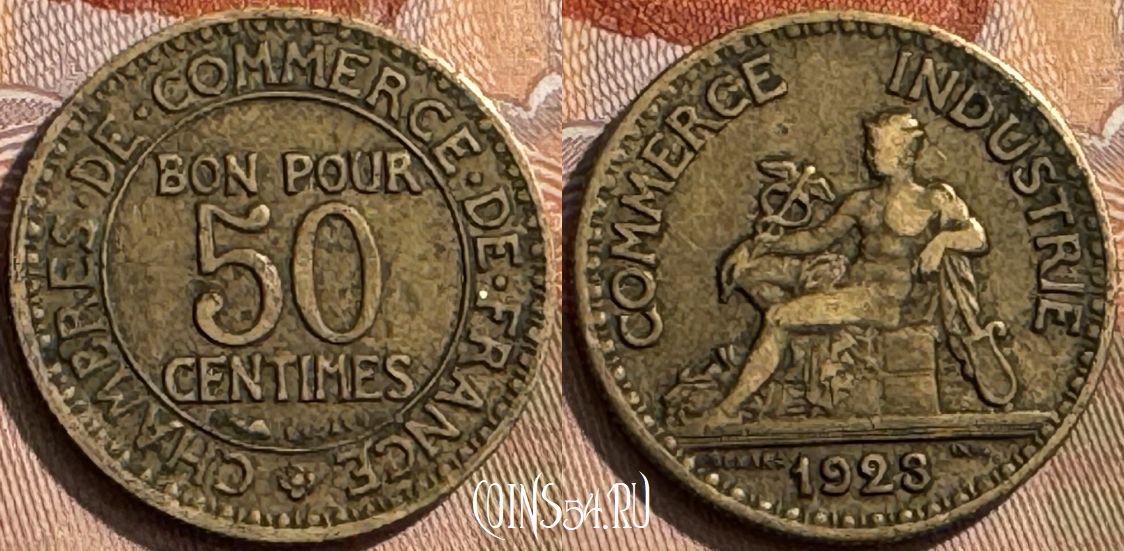Франция 50 сантимов 1923 года, KM# 884, 312s-096