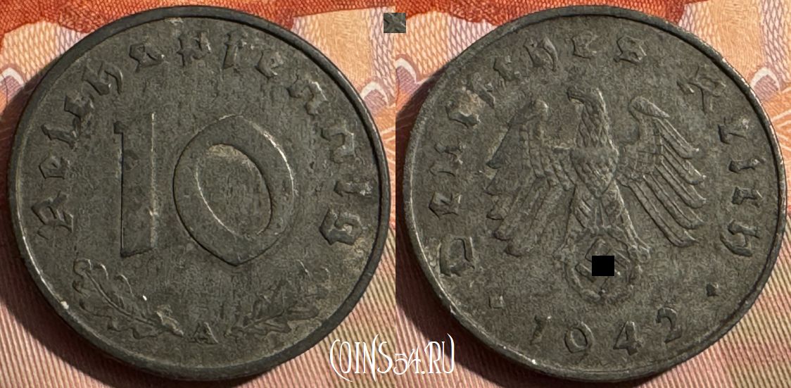 Германия (Третий рейх) 10 рейхспфеннигов 1942 года A, KM# 101, 372s-013