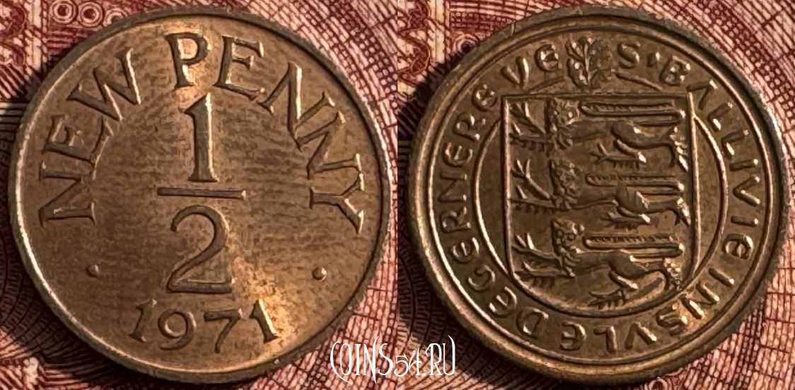 Гернси 1/2 нового пенни 1971 года, KM# 20, 368s-092