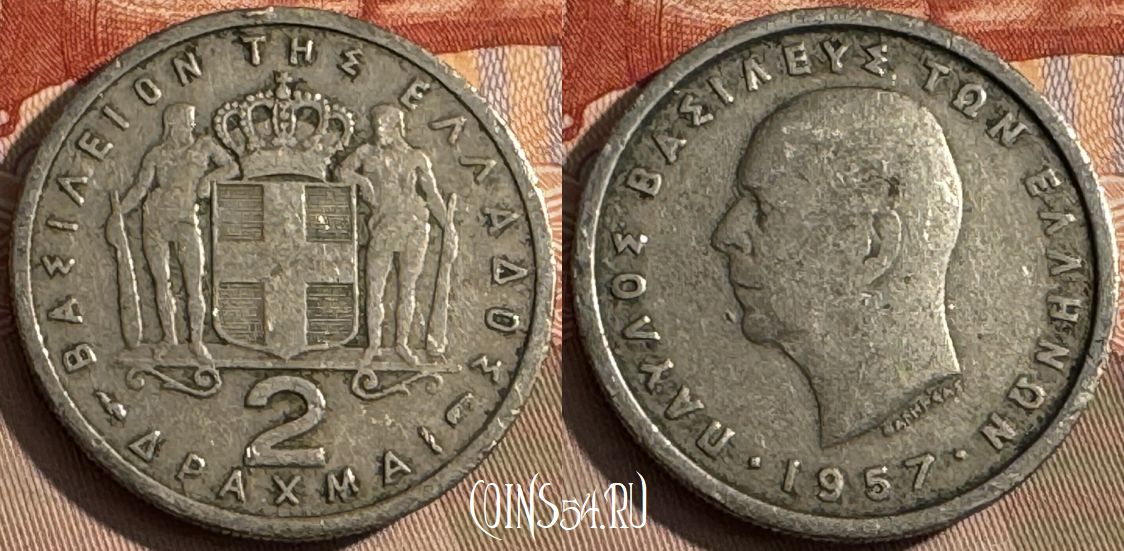 Греция 2 драхмы 1957 года, KM# 82, 044s-009