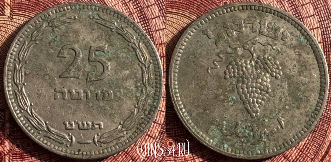 Израиль 25 прут 1949 года, KM# 12, 358s-102