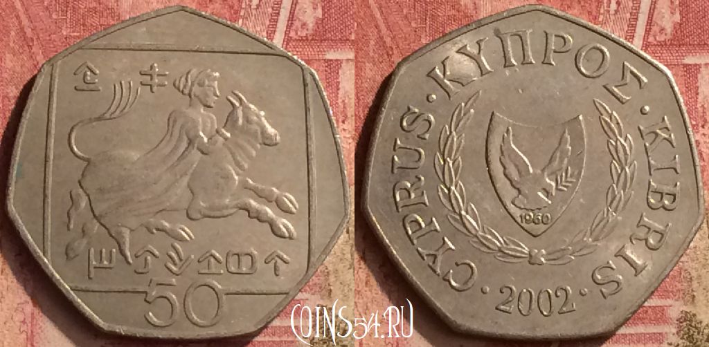 Кипр 50 центов 2002 года, KM# 66, 057n-089