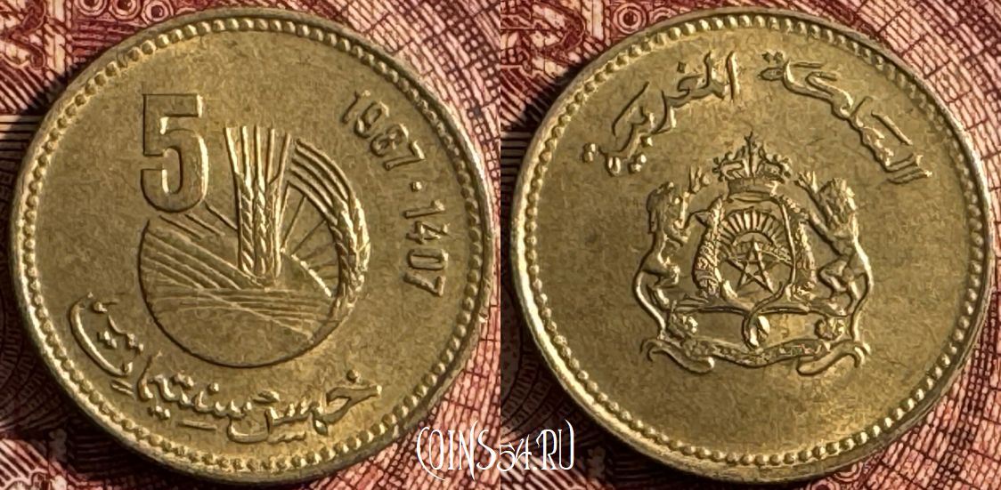 Марокко 5 сантимов 1987 года (1407), Y# 83, 368s-108