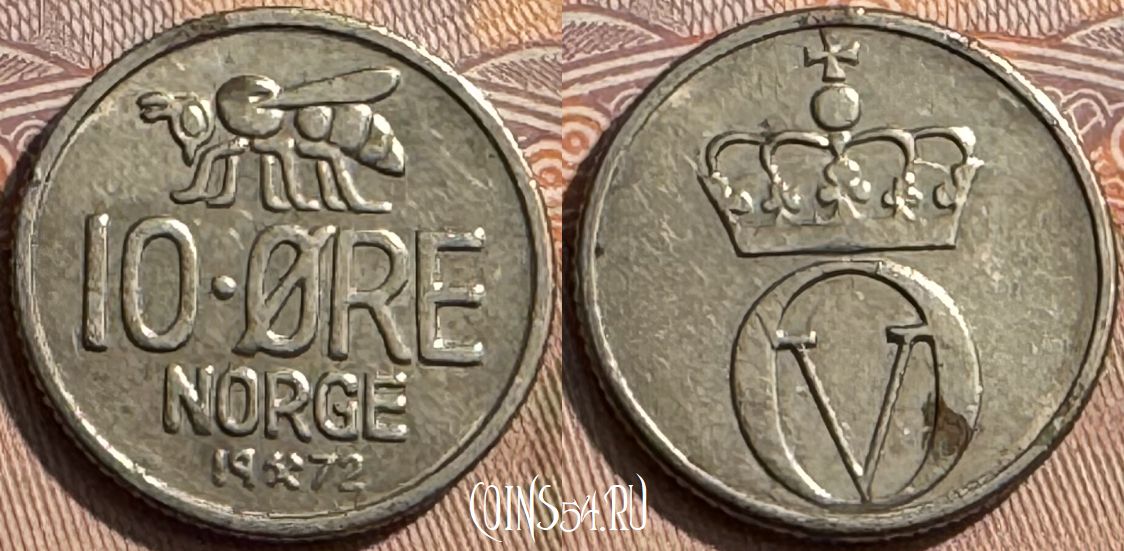 Норвегия 10 эре 1972 года, KM# 411, 307s-002