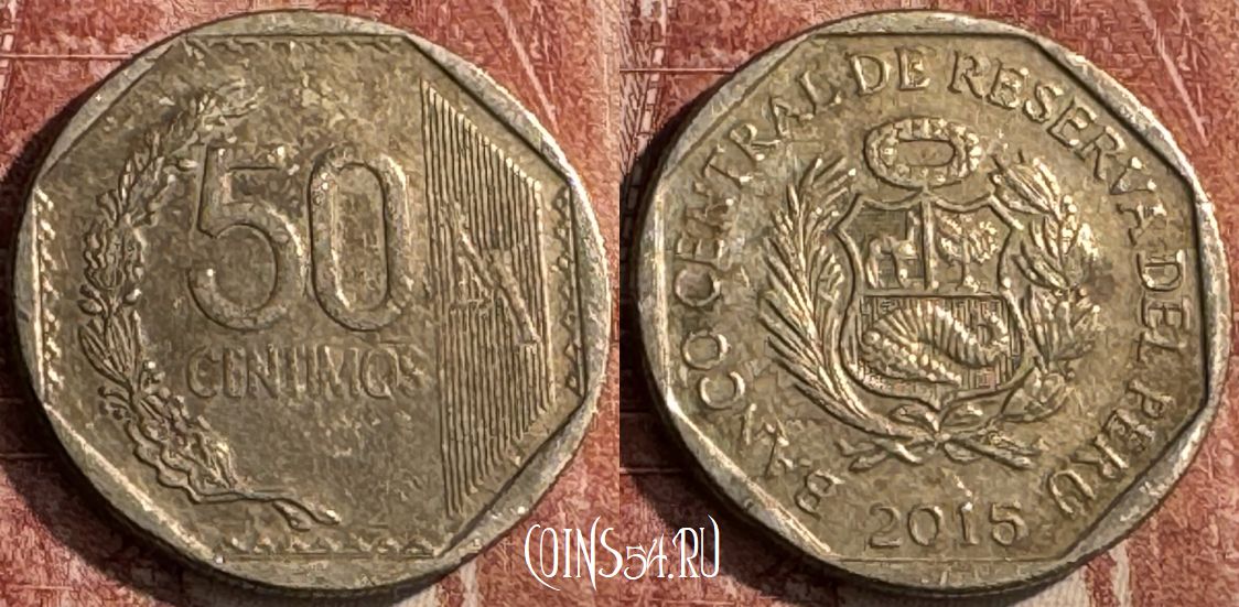 Перу 50 сентимо 2015 года, KM# 307.4, 052s-200