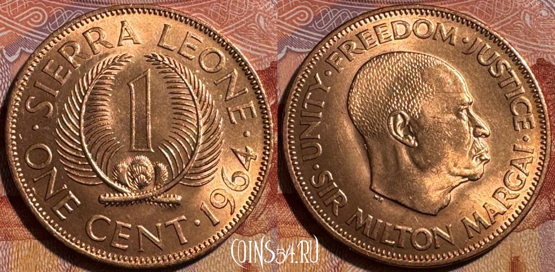 Сьерра-Леоне 1 цент 1964 года, KM# 17, 501s-134