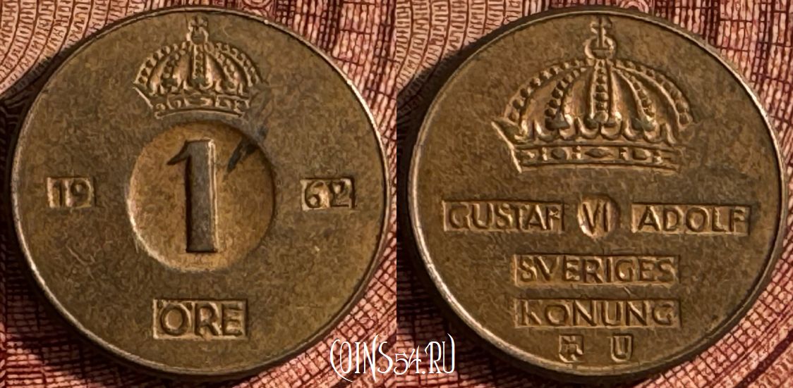 Швеция 1 эре 1962 года, KM# 820, 367s-089