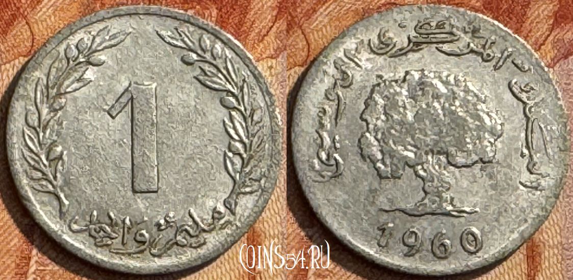 Тунис 1 миллим 1960 года, KM# 280, 278s-079