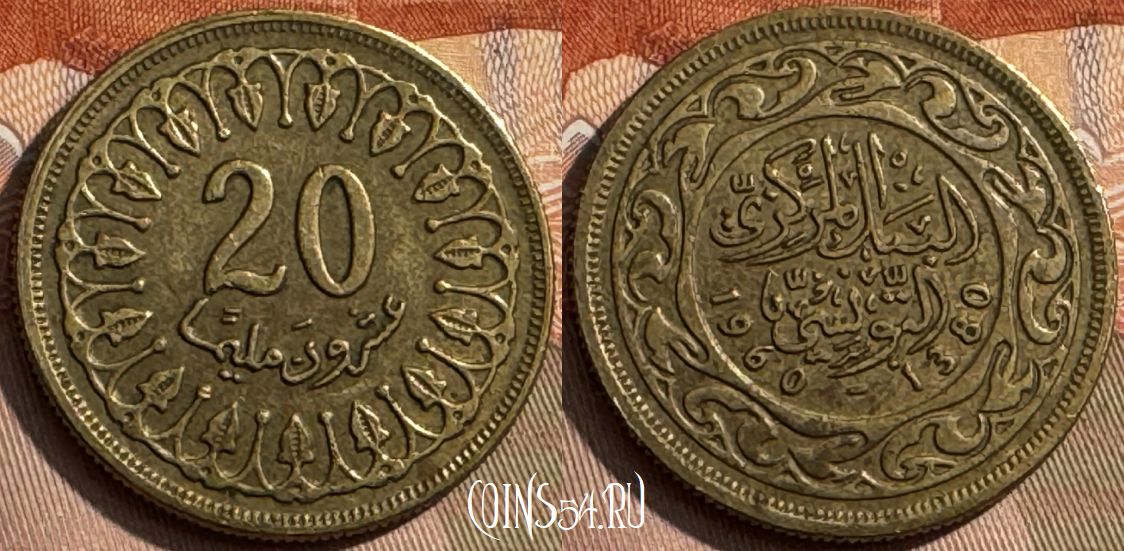 Тунис 20 миллимов 1960 года, KM# 307, 292s-086