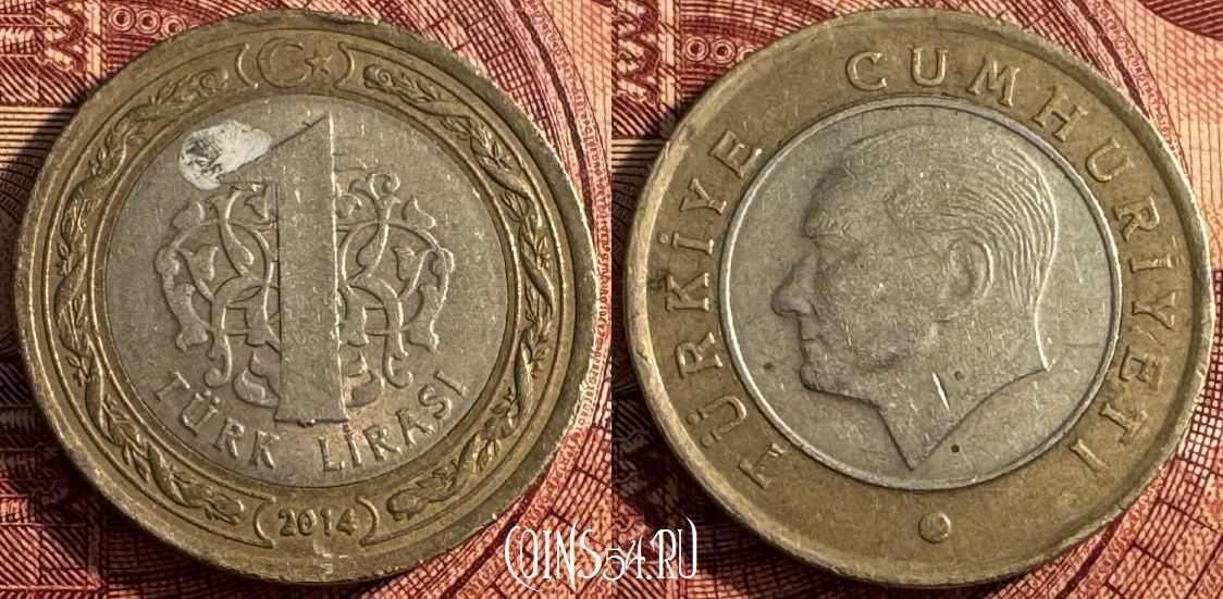 Турция 1 лира 2014 года, KM# 1244, 359s-044
