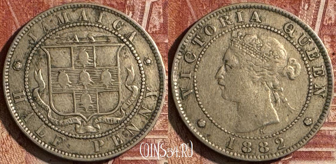 Ямайка 1/2 пенни 1882 года, KM# 16, 504s-126