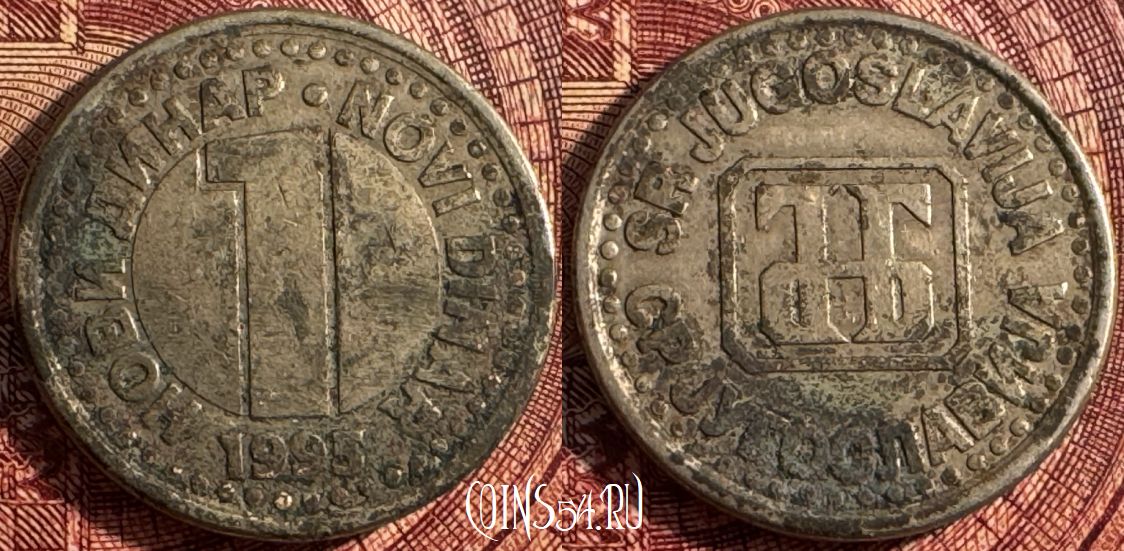 Югославия 1 новый динар 1995 года, KM# 165, 361s-026