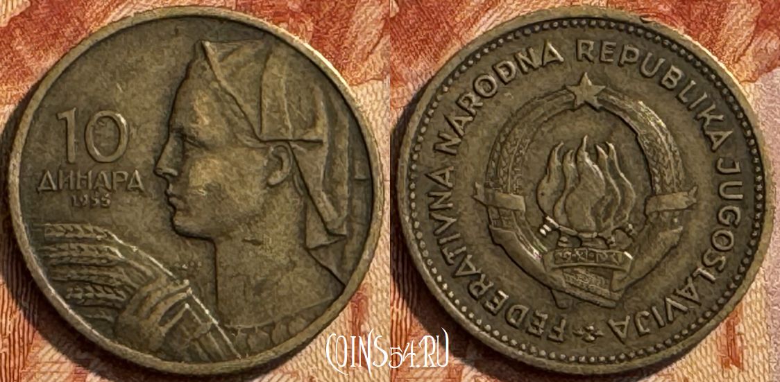 Югославия 10 динаров 1955 года, KM# 33, 275s-058
