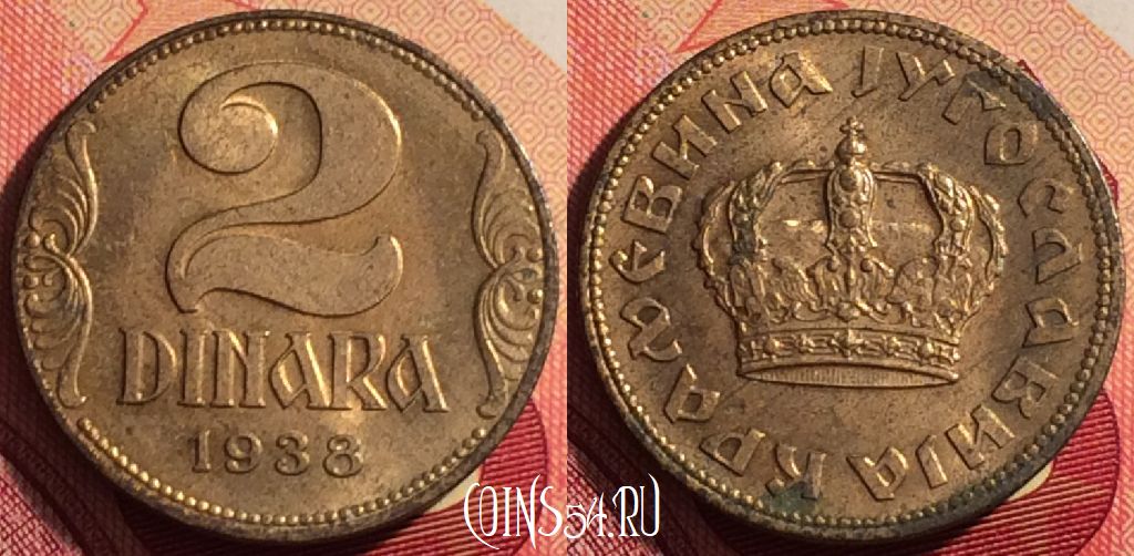 Югославия 2 динара 1938 года, KM# 21, 207i-077