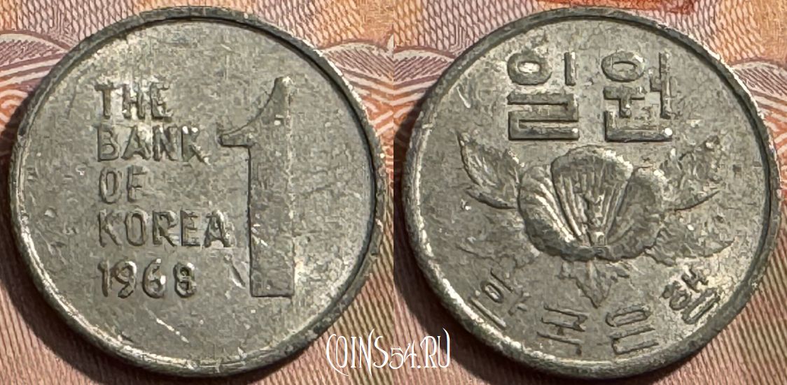Южная Корея 1 вона 1968 года, KM# 4a, 307s-029