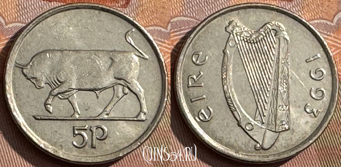 Ирландия 5 пенсов 1993 года, KM# 28, 393s-069