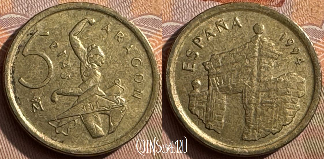 Испания 5 песет 1994 года, KM# 931, 393s-123
