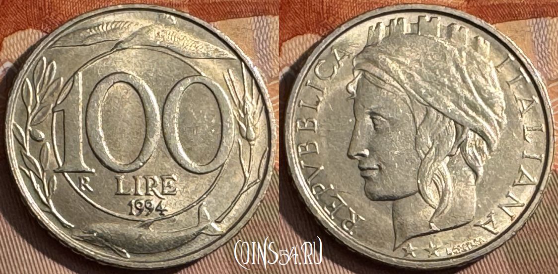 Италия 100 лир 1994 года, KM# 159, 376s-073