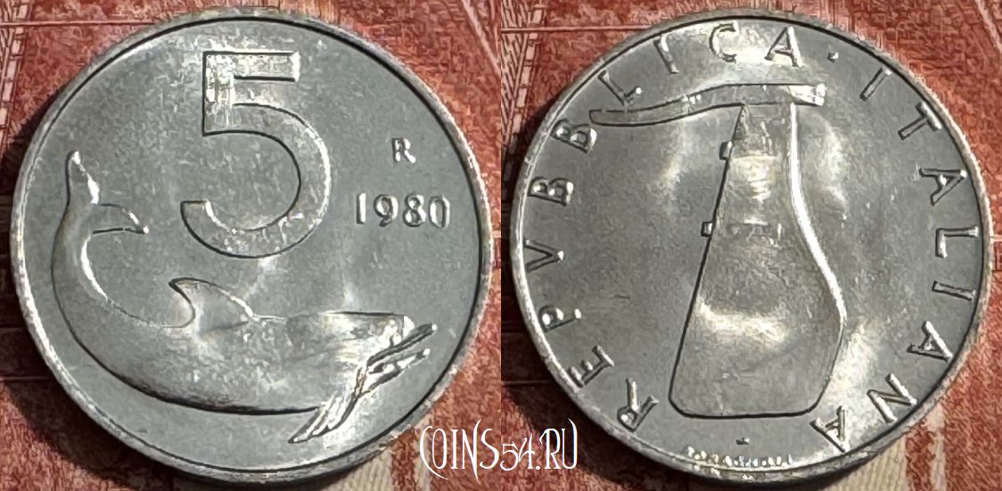 Италия 5 лир 1980 года, KM# 92, 502s-089