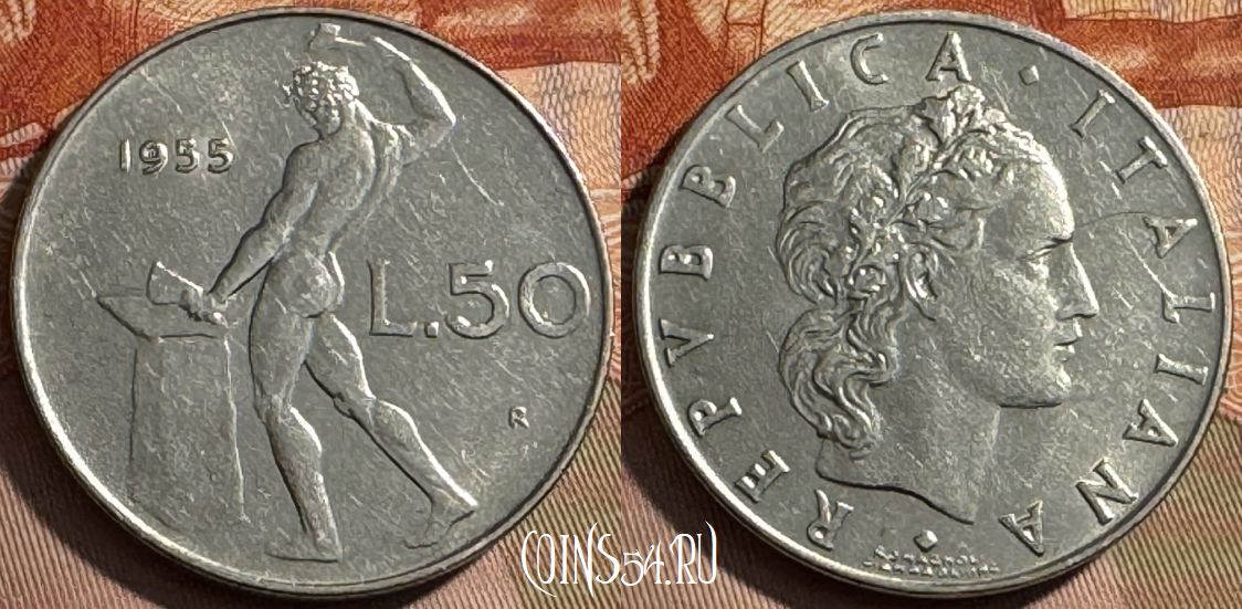Италия 50 лир 1955 года, KM# 95.1, 407s-126