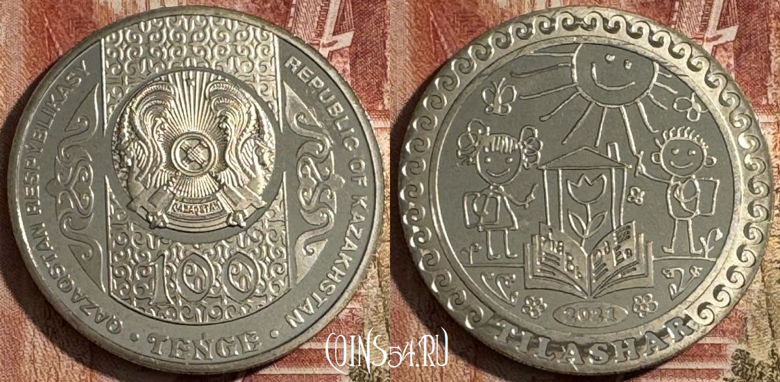 Аверс: 100 TENGE QAZAQSTAN RESPÝBLIKASY REPUBLIC OF KAZAKHSTAN