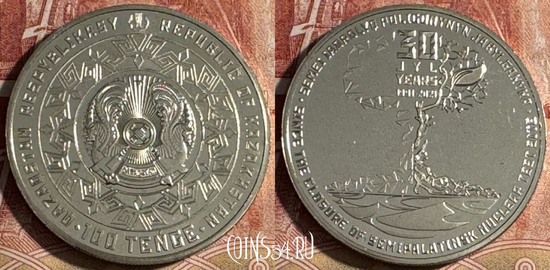Аверс: 100 TENGE QAZAQSTAN RESPÝBLIKASY REPUBLIC OF KAZAKHSTAN