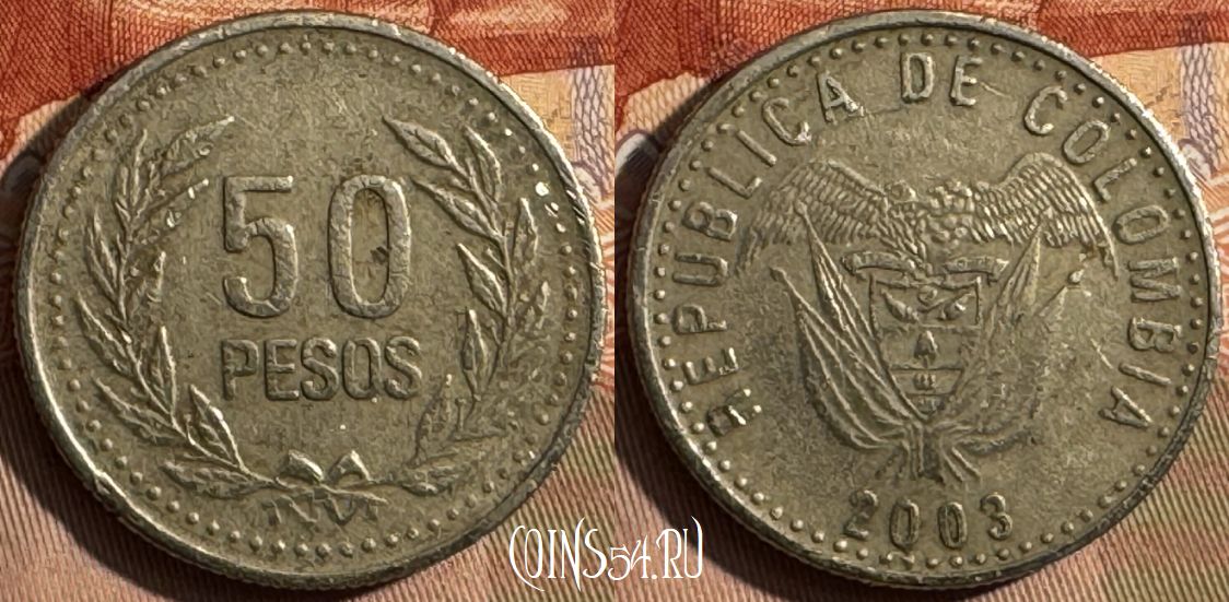 Колумбия 50 песо 2003 года, KM# 283, 427s-075