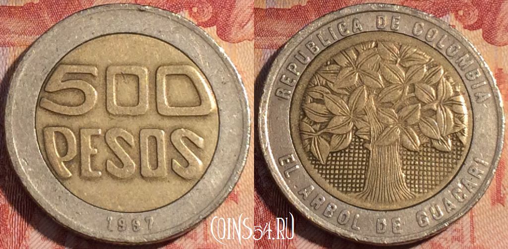 Колумбия 500 песо 1997 года, KM# 286, 157a-108