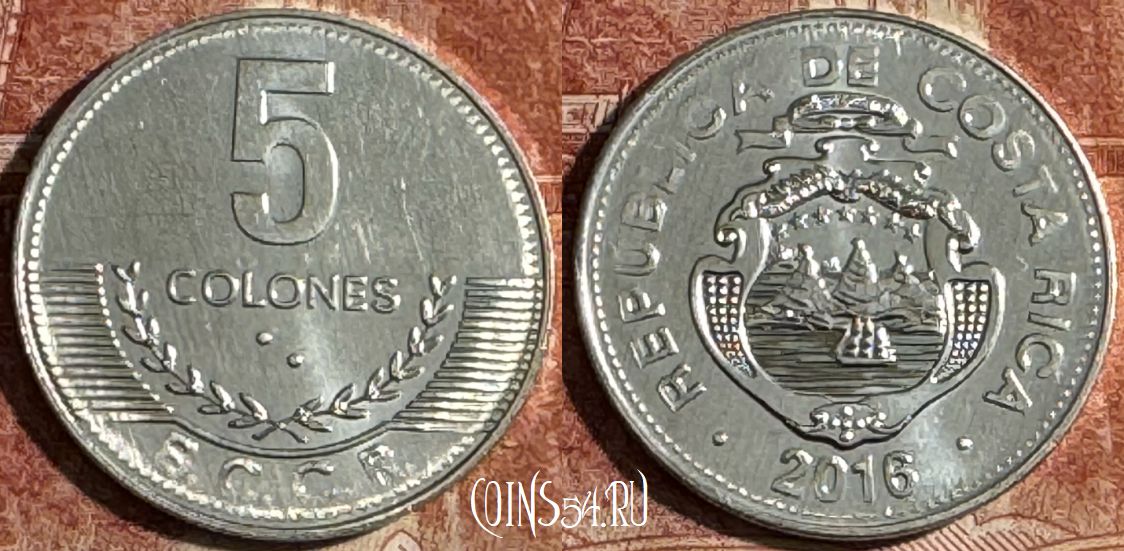 Коста-Рика 5 колонов 2016 года, KM# 227b, 501s-029