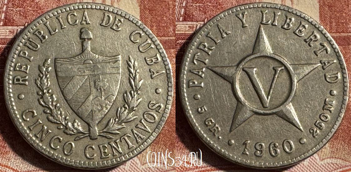 Куба 5 сентаво 1960 года, KM# 11.3, 451s-128